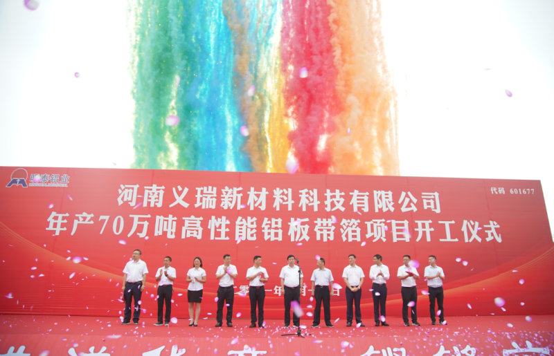 7月18日,明泰鋁業(yè)舉行河南義瑞新材料科技有限公司年產(chǎn)70萬噸高性能鋁板帶箔項目開工儀式。