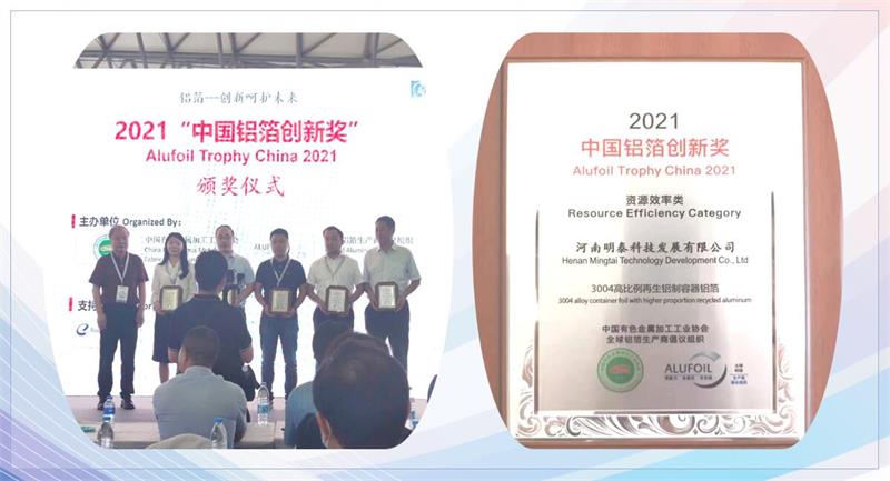 明泰科技3004容器鋁箔榮獲2021中國(guó)鋁箔創(chuàng)新獎(jiǎng)